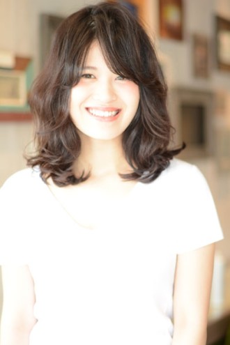 ナチュラルシフォンウェーブ* 透明感のあるスモーキーアッシュのカラーにシフォンのような柔らかいナチュラルウェーブ♪ アレンジや乾かし方によっても表情を変える便利なミディアムヘア!!! Style data / スタイルデータ たまごまる四角ベース三角