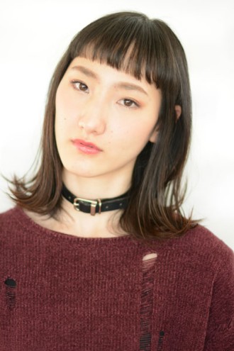 ストレートラインの前髪と外ハネのスタイリングで個性の出るスタイルに仕上げました!☆カラーもあまり明るくせず、ブラックやアッシュ系でモードな雰囲気にするとお洒落です♪人とは違うスタイルにしたい!という方におすすめです(^^)