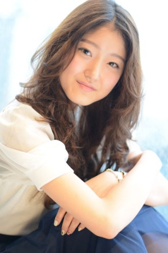 清楚系ルーズウェーブ デジタルパーマを根元からかけて全体をふわっとさせました。ルーズなカールでもまとまるように前髪からレイヤーをつなげてカットしています。だからスタイリング簡単♪センターパートのふわっとした前髪がポイントです☆ Style data / スタイルデータ たまごまる四角ベース三角