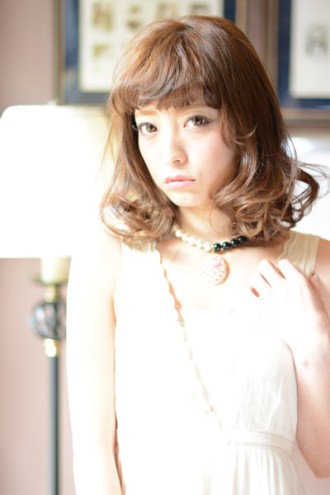 大人可愛いAラインミディ Aラインの可愛いシルエットに春らしい動きのあるパーマで大人らしさを♪ 透明感のあるクリアカラーで表情に柔らかさがでます☆ Style data / スタイルデータ たまごまる四角ベース三角