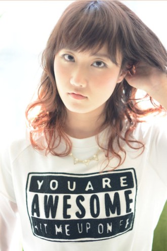 全体をコテでウェーブ風に巻き、スタイリング剤はワックスとオイルを混ぜて使うと少し濡れたような質感になるので、よりルーズさが出ますよ☆