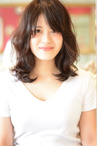 ナチュラルシフォンウェーブ* 透明感のあるスモーキーアッシュのカラーにシフォンのような柔らかいナチュラルウェーブ♪ アレンジや乾かし方によっても表情を変える便利なミディアムヘア!!! Style data / スタイルデータ たまごまる四角ベース三角