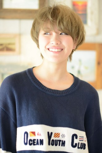 ブリーチ毛に、イルミナカラーのグレージュとブルーのカラーをのせて外国人風アッシュ系の髪色に♪ダメージがなく、より透明感が出るので、退色も楽しめるカラーです♪無造作に動かして、ラフに仕上げるのがポイントです!耳にかけてもかわいいですよ☆